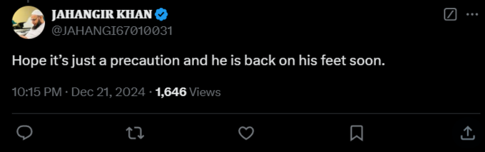 Jahangir Khan: «Сподіваюся, це лише захід безпеки, і він скоро встане на ноги».