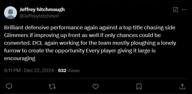 Jeffrey hitchmough: «Чудова оборона знову проти однієї з найкращих команд. Є надія на покращення в атаці, якби тільки моменти реалізовувалися. Домінік Калверт-Льюїн знову працює на команду, в основному один на один, створюючи можливості».