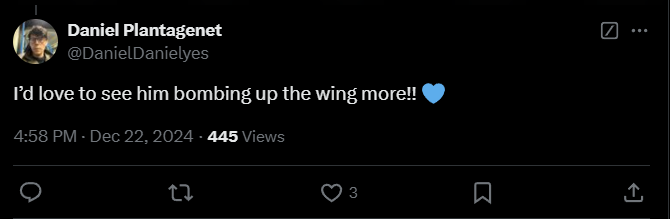 Daniel Plantagenet: «Я б хотів бачити, як він частіше атакує по флангу!».