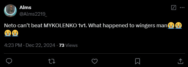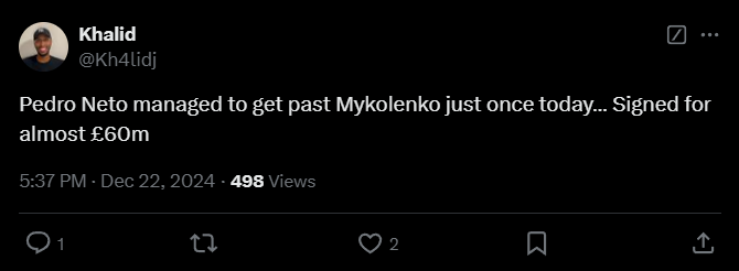 Khalid: «Педру Нету зміг пройти Миколенка тільки один раз сьогодні… Підписаний за майже 60 млн фунтів».