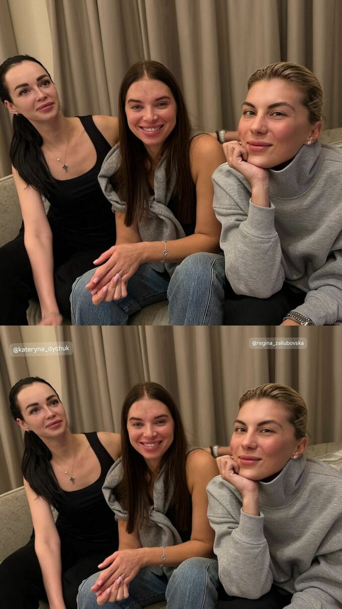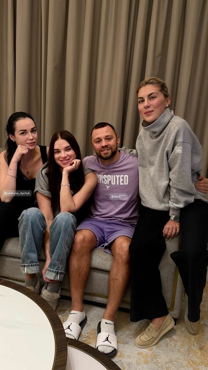 Катерина Усик у сторіс Instagram публікує фото з подругами та членами команди боксера.