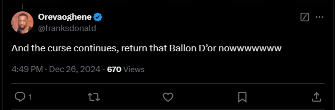 Orevaoghene: «Прокляття продовжується, поверніть цей Золотий м'яч зараз же».