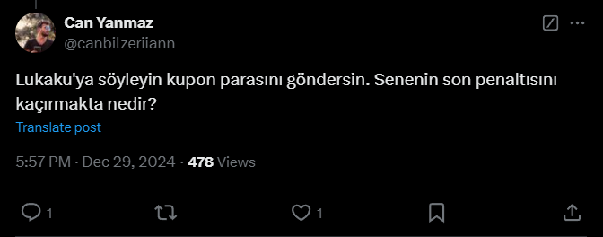 Can Yanmaz: «Скажіть Лукаку, щоб він відправив гроші за ставку. Як можна було промахнутися з останнім пенальті року?».