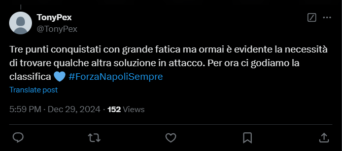 Вболівальники «Наполі» були задоволені результатом, адже команда з 41 очком займає друге місце в турнірній таблиці, маючи однакову кількість очок із лідером Серії А, «Аталантою». Однак багато хто з них залишається наляканим грою Ромелу Лукаку.