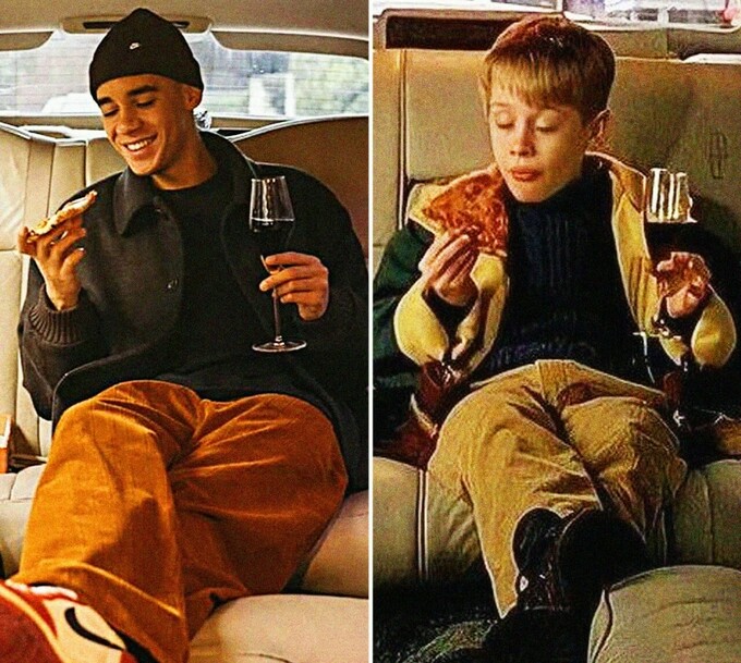 Вінгер зробив фотографію в лімузині, тримаючи в руках шматочок піци та келих алкогольного напою, що є посиланням на героя фільму Кевіна Маккаллістера.