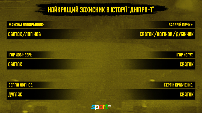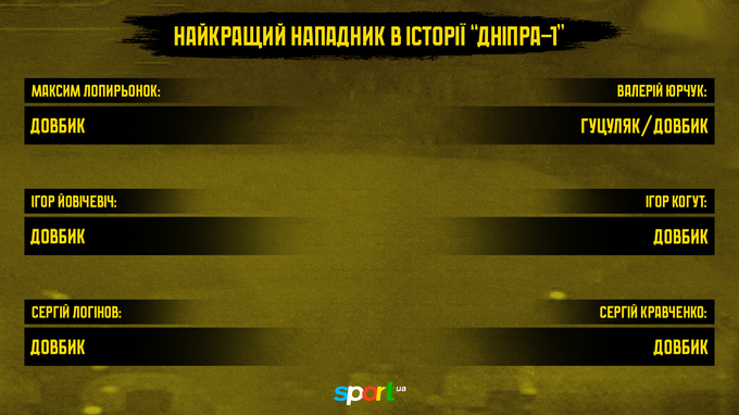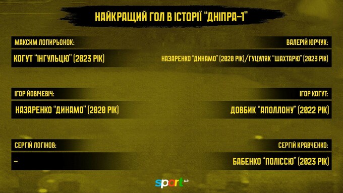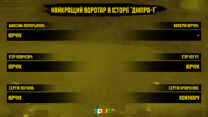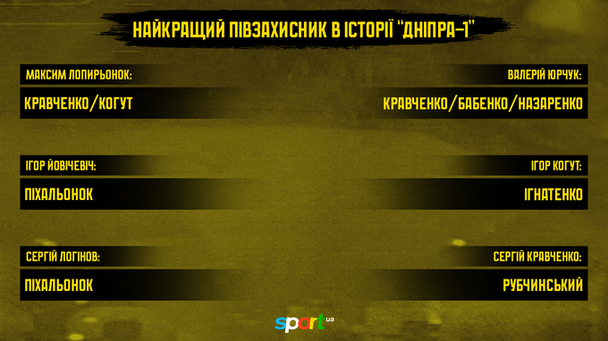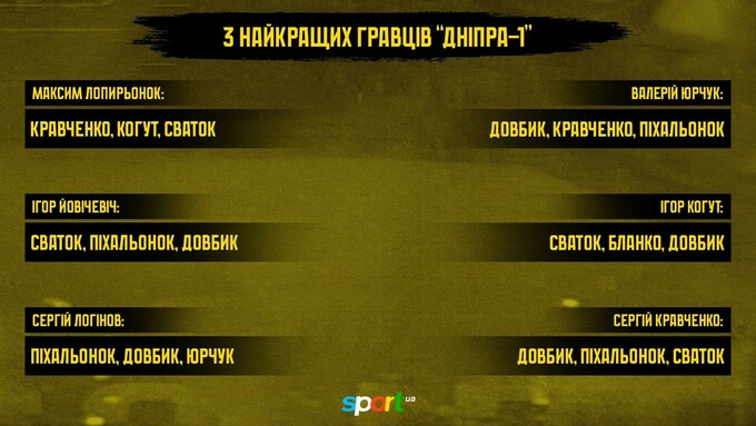 Визначати найкращих будуть гравці, які творили історію цього клубу. Можливо, тут буде певна частка суб’єктивності, бо лише умовний Ігор Когут грав при всіх тренерах «Дніпра-1», але все одно результати вийшли досить цікаві. Окремого представлення журі не потребує, тому просто зазначу прізвища та їхній внесок у розвиток «спортклубівців». Єдиний важливий нюанс, що у випадку рівності голосів, кращих буде вибирати автор, як засновник цієї щорічної премії.