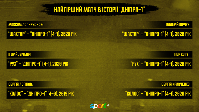 Всі варіанти, що були названі журі, гріють душі та серця вболівальників «Дніпра-1». Навіть більшість пересічних шанувальників українського футболу можуть пам’ятати розгром «Ворскли» – це був праймовий «Дніпро-1» Ігора Йовічевіча - або сенсаційну перемогу над «Динамо», після того, як Кучер та Красніков влітку збирали команду зі світу по нитці.