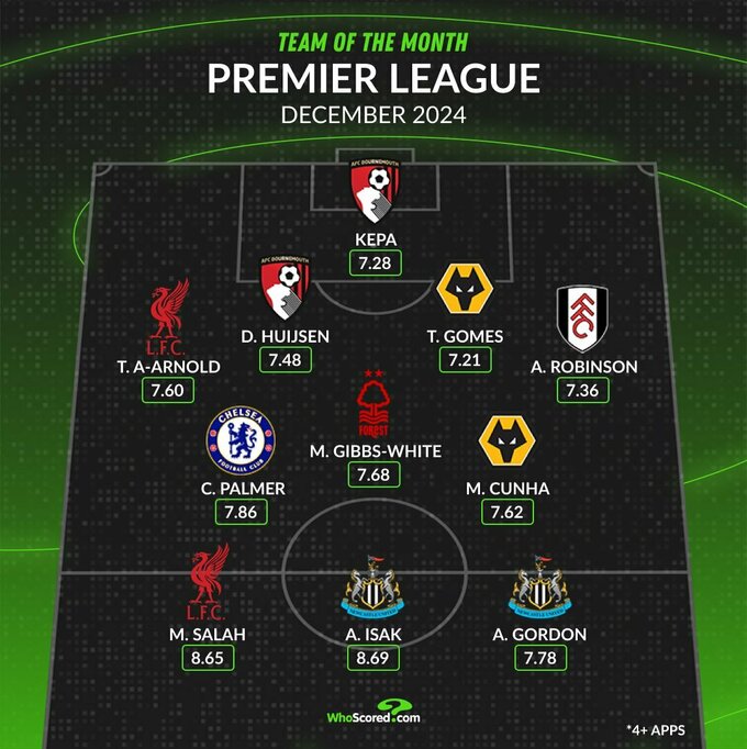 Найкращим гравцем грудня вважається одноклубник Гордона Александер Ісак з оцінкою 8.69.