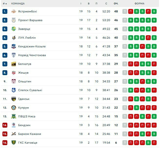 Чемпионат Польщі з волейболу. Турнірна таблиця