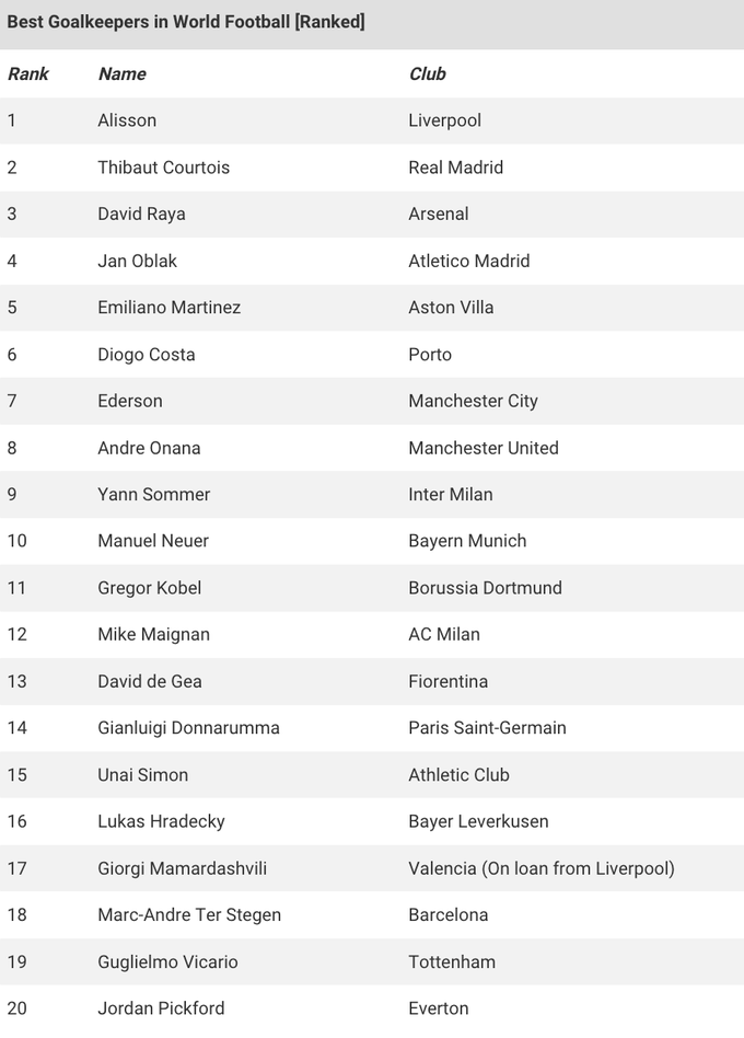 20 найкращих голкіперів у світі від GiveMeSport