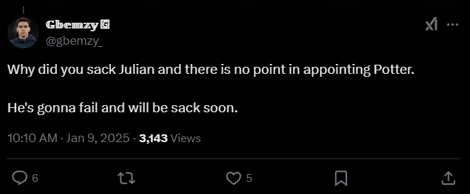 Gbemzy: «Чому ви звільнили Хулена, і немає сенсу призначати Поттера. Він провалиться і його скоро звільнять».