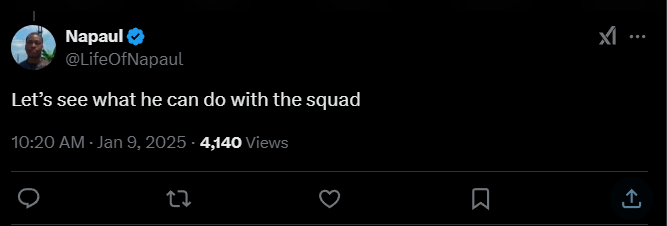 Napaul: «Подивимося, що він зможе зробити з командою».