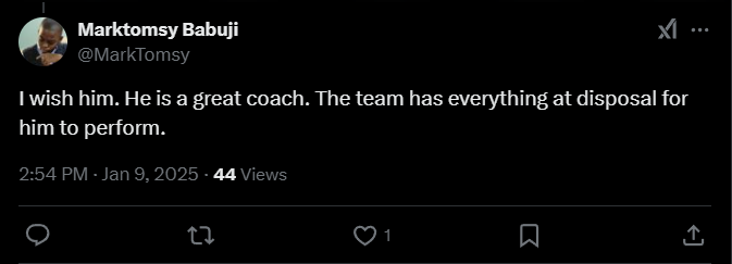 Marktomsy Babuji: «Бажаю йому удачі. Він чудовий тренер. У команди є всі необхідні ресурси, щоб він досяг успіху».