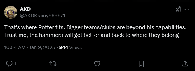AKD: «Ось де Поттер підходить. Великі команди/клуби йому не по силах. Повірте мені, молоти стануть кращими і повернуться туди, де їм і місце».