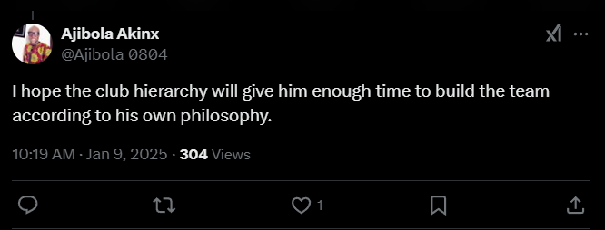 Ajibola Akinx: «Сподіваюся, керівництво клубу надасть йому достатньо часу, щоб побудувати команду згідно з його власною філософією».