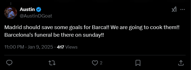 Austin: «Мадрид» має зберегти кілька голів для «Барси»!! Ми їх приготуємо!! Похорон Барселони відбудеться в неділю!!».
