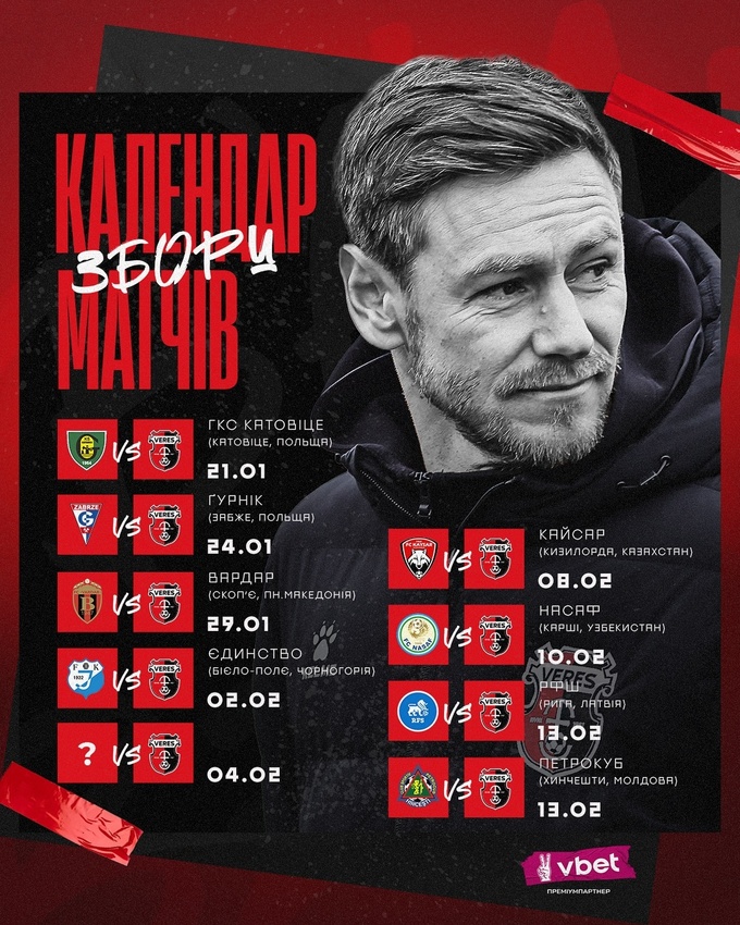 «Намагалися підібрати сильних суперників із різним стилем футболу. Усі спаринг-партнери – представники елітних дивізіонів чемпіонатів своїх країн. Є також учасники осінньої частини єврокубкового сезону. Поки залишилося одне вікно для спарингу – 4 лютого. Зараз ведемо перемовини з потенційним суперником».