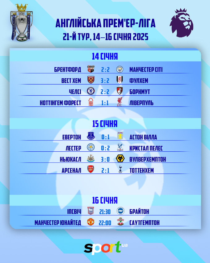 Увечері 15 січня відбулися матчі 21-го туру Англійської Прем'єр-ліги.