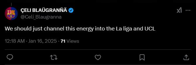 Celi_Blaugranna: «Ми повинні спрямувати цю енергію на Ла Лігу і Лігу Чемпіонів».