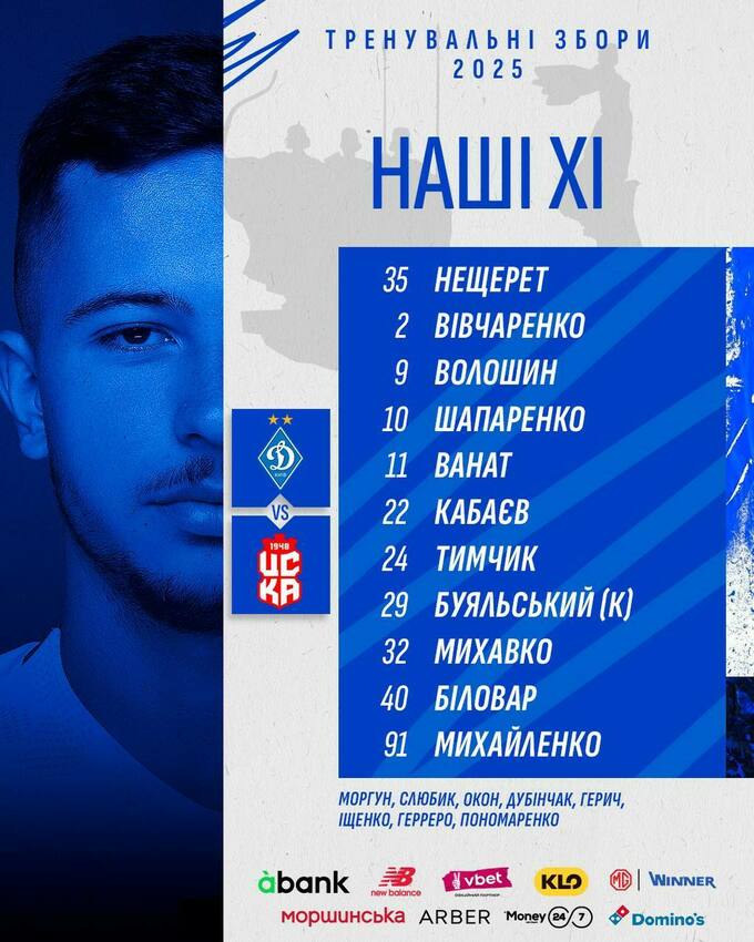 «Динамо» Київ: Нещерет – Вівчаренко, Михавко, Біловар, Тимчик – Шапаренко, Михайленко – Кабаєв, Буяльський, Волошин – Ванат.