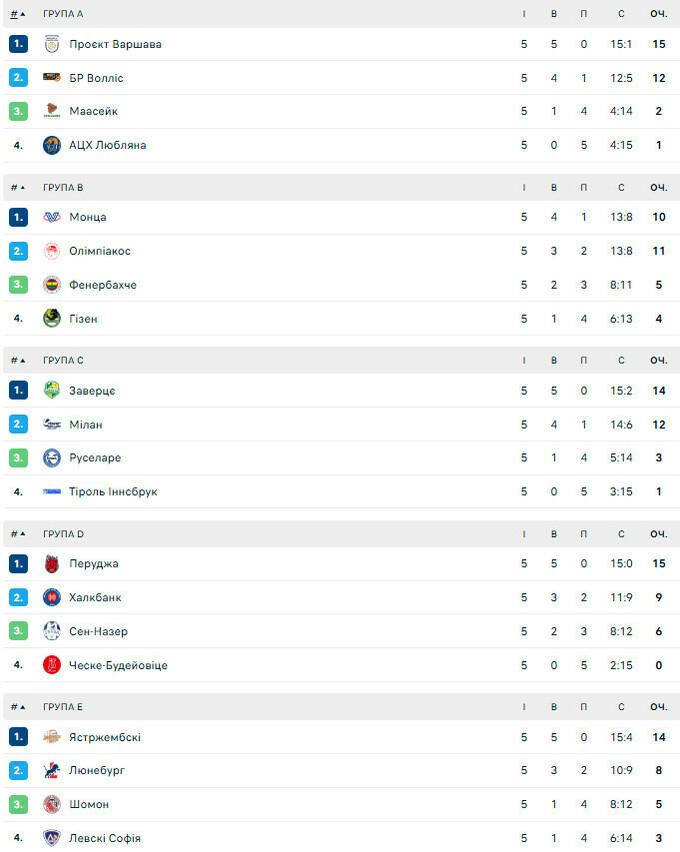 Актуальні таблиці групового турніру Ліги чемпіонів за підсумками п’яти турів