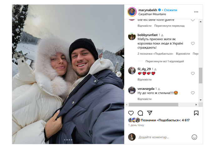 «Напевно, приємно жити як королева, поки люди в Україні страждають», – написав іноземець.