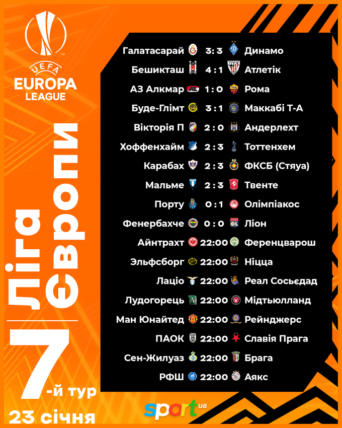 ⚽️ Ліга Європи. 7-й тур, 23 січня