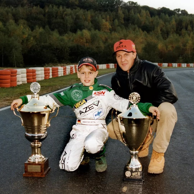 Себастьяна Феттеля, якого фанати прозвали «бейбі Шумі» (за те що бачили в ньому наступника Міхаеля Шумахера), був сином Норберта Феттеля — колишного аматорського гонщика. Саме Норберт подарував майбутньому чемпіону перший картинг на Різдво. Себастьян із захопленням поринув у гонки, а батько допомагав розвивати його талант. У будні хлопець ходив до школи, а у вихідні разом із батьком їздив на трасу у фургоні.