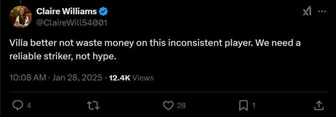Claire Williams: «Віллі» краще не витрачати гроші на цього непостійного гравця. Нам потрібен надійний нападник, а не хайп».