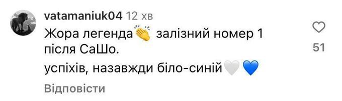 Vatamaniuk04: «Жора легенда, залізний номер 1 після Шовковського. Успіхів, назавжди біло-синій».