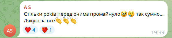 AS: «Стільки років перед очима промайнуло, так сумно... Дякую за все».