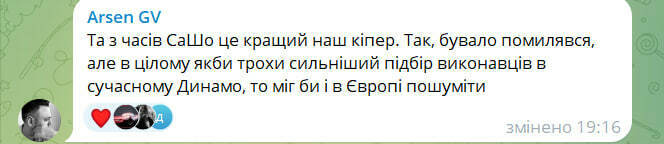 Arsen GV: «Та з часів Шовковського це кращий наш кіпер. Так, бувало помилявся, але в цілому якби трохи сильніший підбір виконавців в