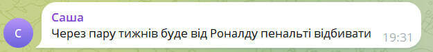 Саша: «Через пару тижнів буде від Роналду пенальті відбивати».
