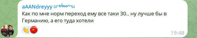 Andrey: «Як на мене норм перехід йому все таки 30... ну краще б у Німеччину, а його туди хотіли».