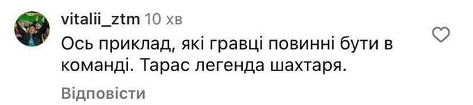 Vitalii_ztm: «Ось приклад, які гравці повинні бути в команді. Тарас легенда «Шахтаря».