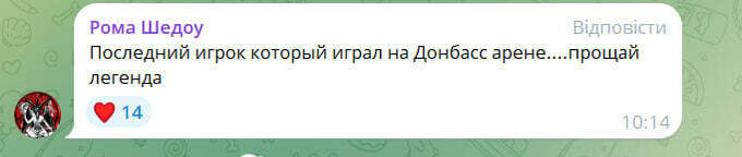 Рома Шедоу: «Останній гравець який грав на Донбас Арені....прощай легенда».