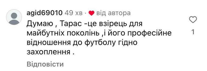 Agid69010: «Думаю, Тарас – це взірець для майбутніх поколінь, і його професійне відношення до футболу гідно захоплення».