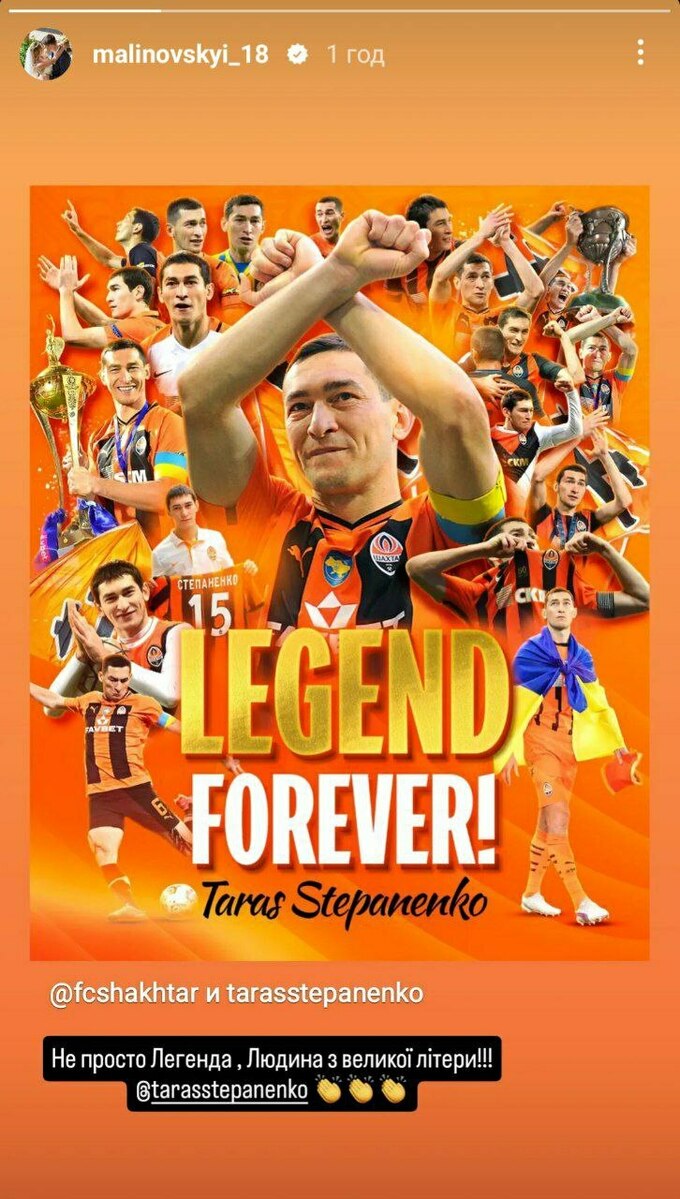 ФОТО. «Не просто легенда». Маліновський звернувся до Степаненка