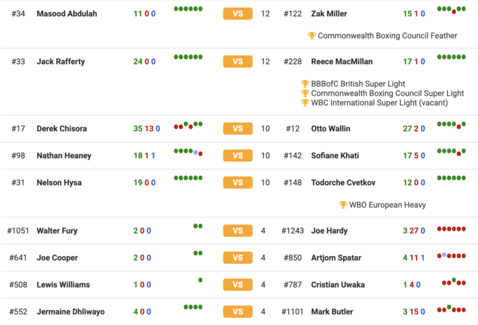 Головною подією стане поєдинок у суперважкій вазі – на рингу зустрінуться відомий британський супертяж і колишній претендент на чемпіонський титул Дерек Чісора (35–13, 23 КО) та шведський боксер Отто Валлін (27–2, 15 КО).