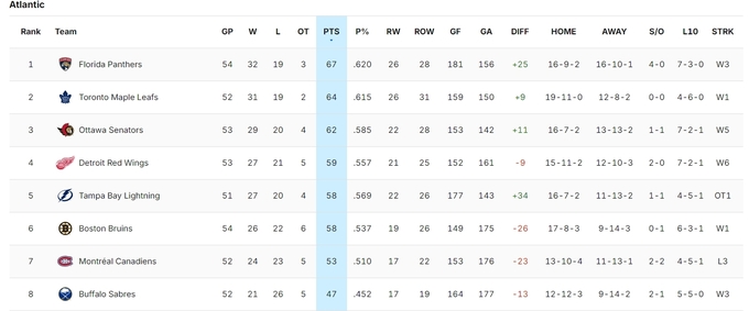 Команда в Атлантичному дивізіоні тримається в топ-3, поступаючись кількома очками лише Флориді та Торонто, сподіваючись прорвати серію сезонів без плей-оф.