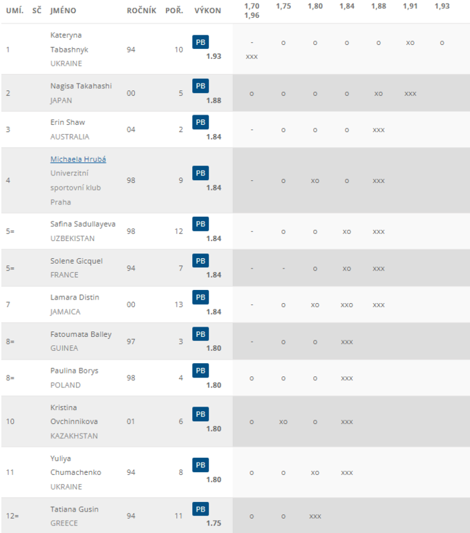 Табашник подолала з першої спроби 1.93 метри, але на позначці 1.96 метри завершила змагання.