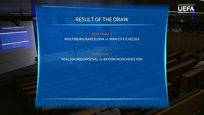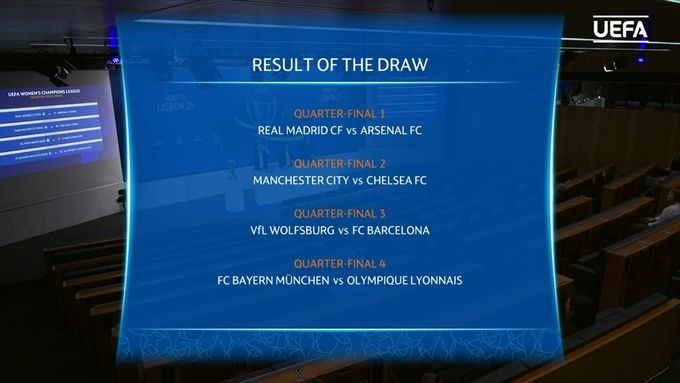 7 лютого 2025 року о 14:00 у швейцарському Ньоні відбулося жеребкування чвертьфіналів та півфіналів жіночої Ліги чемпіонів УЄФА.