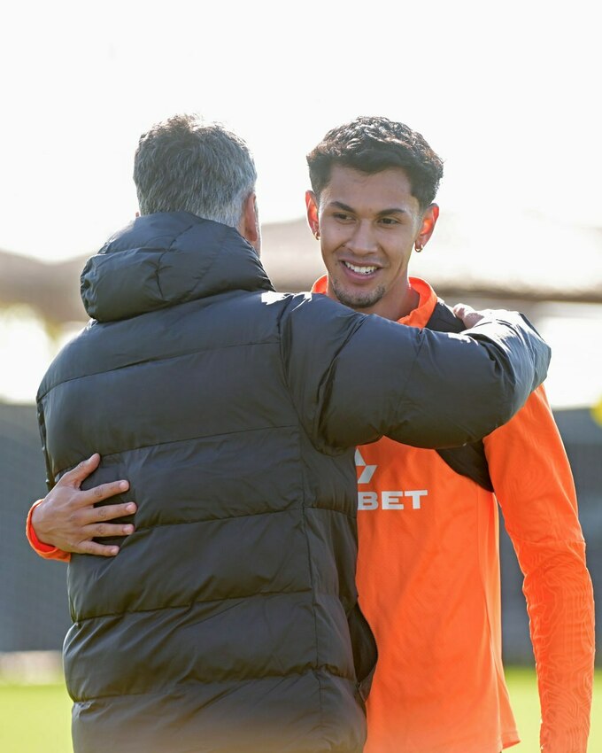 Перед початком тренування захисник насамперед зустрівся з головним тренером Марино Пушичем, з яким провів невелику розмову.