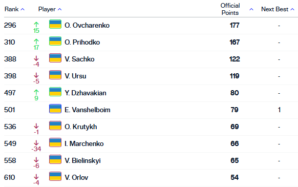 Олександр поки що єдиний представник України в топ-300. Решта українських тенісистів втратили місця за минулий тиждень, крім Юрія Джавакяна – він додав 9 місць і тепер йде 497-м.