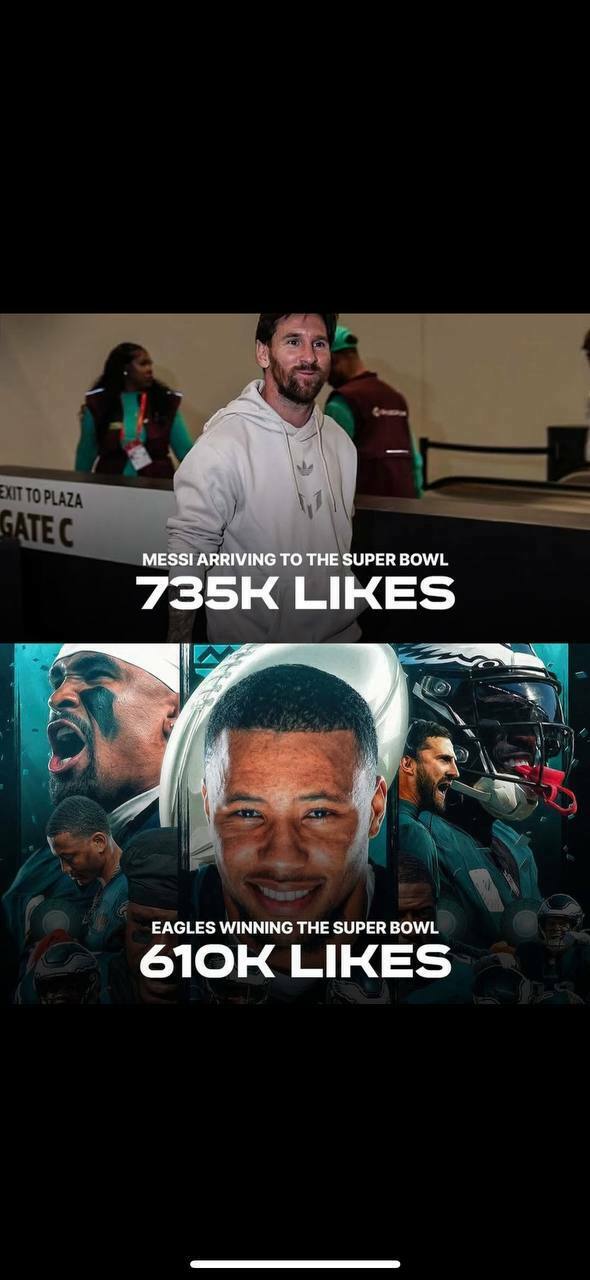 Поява легендарного гравця викликала справжній інтерес з боку вболівальників у соціальних мережах. Приїзд Мессі зібрав більше лайків у соціальних мережах, ніж оголошення переможця Супербоула (735 тисяч у Ліонеля та 610 тисяч у «Іглз»).