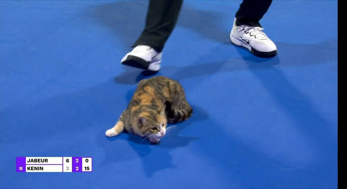 Крім тенісних баталій, на турнірі WTA 1000 у Досі (Катар) уболівальники вже другий день спостерігають за кішкою на кортах.