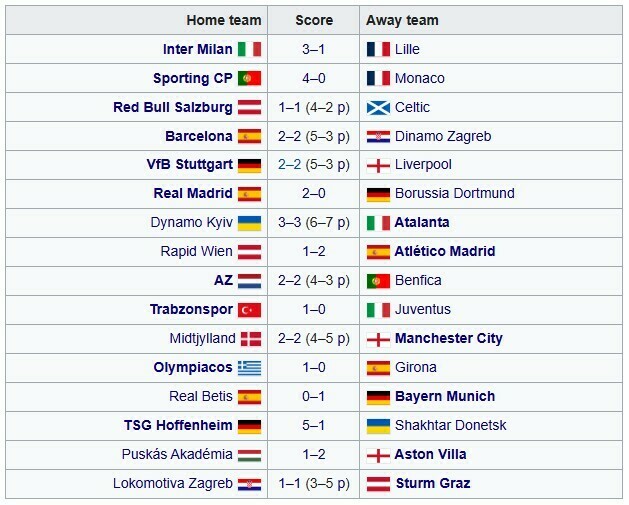 Усі результати матчів 1/16 фіналу