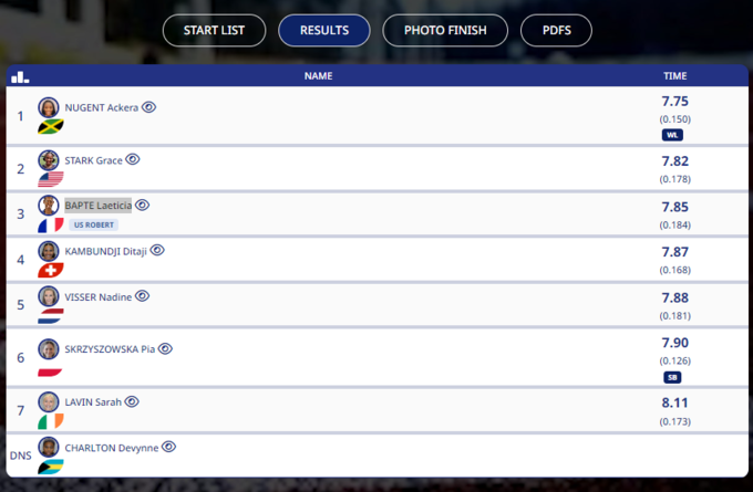 - Акера Ньюджент (Ямайка) – 7.75 с
