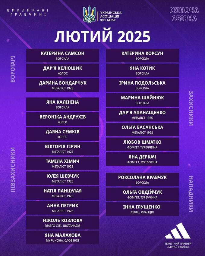 Жіноча збірна України визначилася зі складом, який готуватиметься до поєдинків з Албанією та Хорватією в Лізі націй 2025.