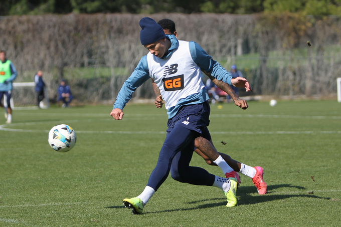 Після цього була робота над передачами, які гравці робили, рухаючись у заданому напрямку між тренувальними фішками та стійками. Далі команда працювала над контролем мʼяча у квадратах, де гравці були поділені на три групи у манішках різних кольорів.